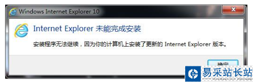 1、開始嘗試用低版本IE進行安裝,安裝程序提示,已經(jīng)安裝了更高版本。看來直接安裝的方式不行。