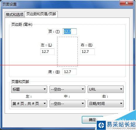 6、在頁邊距和頁眉/頁腳復選框里可以對頁邊距,頁眉和頁腳進行設置,設置完成后,點擊”確定“按鈕后回到打印預覽也,此時再點擊”打印“按鈕后選擇打印機就可以進行打印了。