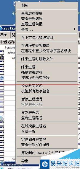 3、要真正解決這個問題,可以通過軟件PChunter進行查殺,下載安裝該軟件,打開該軟件,尋找定位到進程Explorer.exe。右鍵:查看進程模塊。