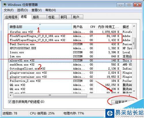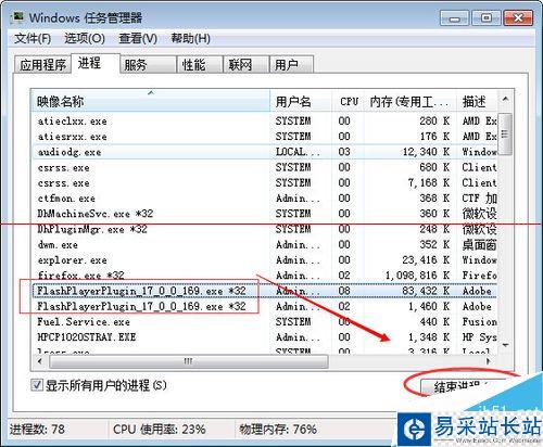 2、任務管理器出現沒響應的時候,也可以這樣 結束 flash 的進程來解決