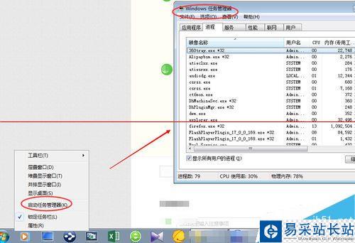 按 CTRL +ALT +DEL 或者 右鍵點擊任務欄選擇啟動任務管理器
