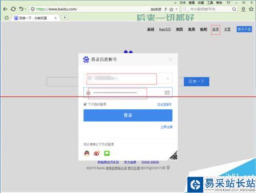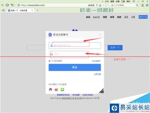8、設置完成后,再次打開百度登錄,就不會有用戶名和密碼信息了,如下圖所示: