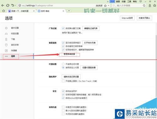 5、然后左側點擊“高級...”,右側選擇“管理表單數據”,如下圖所示: