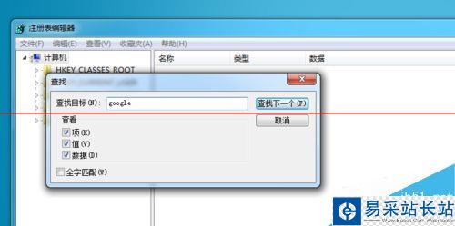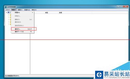 2、運行后進入注冊表窗口,在菜單編輯中選擇查找功能