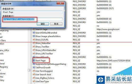 4、查找到相應的值,選擇值名稱,點擊右鍵,修改值,填寫自己要主頁網址。