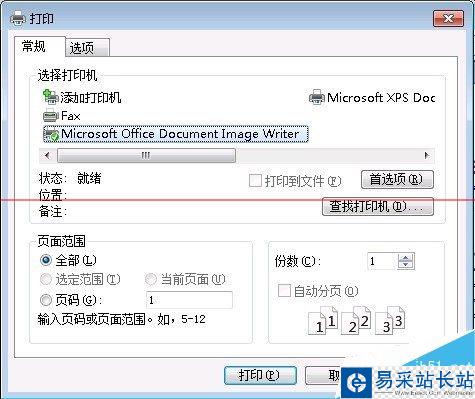 5、打印,根據(jù)需要選擇打印機(jī),選擇頁(yè)碼和份數(shù),打印