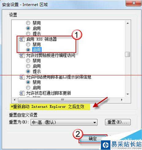 4、在“腳本”項下,找到“啟用 XSS 篩選器”,選擇“啟用”。按“確定”保存修改。
