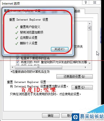 4、重置internet explore設置,注意要勾選【刪除個人設置】
