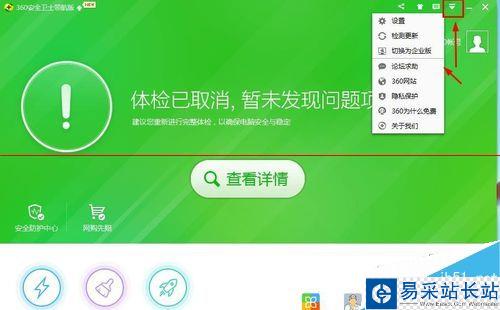 2、進入到衛士頁面以后,我們在頂部的菜單欄中找到如圖的小三角形按鈕,點擊按鈕,會彈出一個新的下拉框,在下拉框中點擊設置