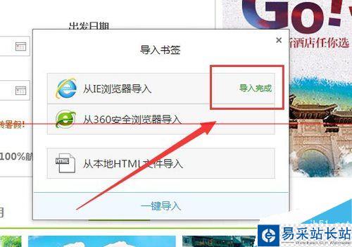 2.導入成功能,導入書簽的窗口會在相對應的選項右側出現綠色的導入完成提示,此時我們的瀏覽器頁面上方收藏夾也會出現相應的數據了。
