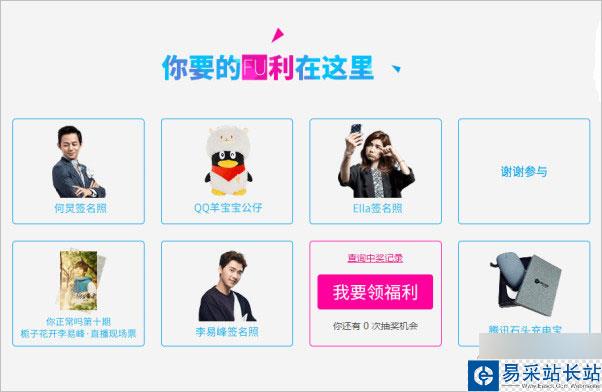 獎品有明星簽名照、QQ公仔、充電寶等禮品將在活動結束后30個工作日內統一發放