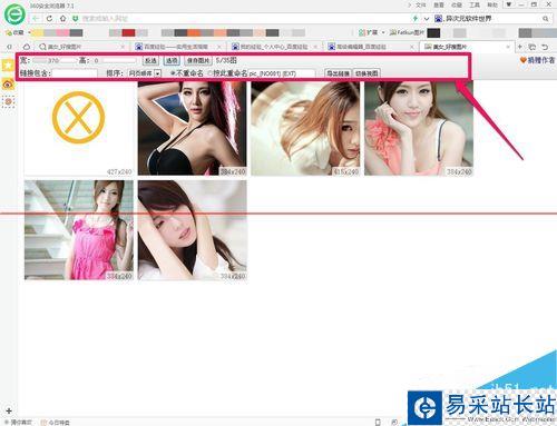 5、同時在選項欄上還有圖片大小篩選的選項,單擊圖片還可以去除不需要的圖片,更改圖片的排序方式,圖片的命名,導出圖片的鏈接,切換視圖等