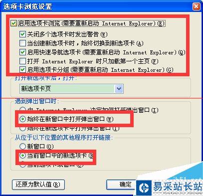 7、【選項卡瀏覽設(shè)置】的窗口,看圖給下方的前面打上勾,然后點擊”確定“。