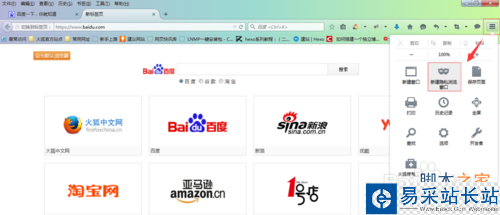 1、點(diǎn)擊 菜單 按鈕 最后面那個(gè)圖標(biāo) ,再點(diǎn)擊“新建隱私瀏覽窗口”。