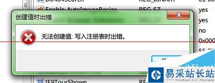 1、為了避免惡意修改IE設置,一般用戶沒有權限修改此路徑下的值,新建鍵值會彈出“無法創建值:寫入注冊表時出錯”,此時可以參考我之前寫的教程。