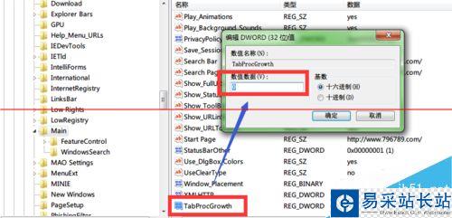4、新建一個DWORD32值,并將其命名為TabProcGrowth,在彈出的對話框中輸入“0”或者“1”