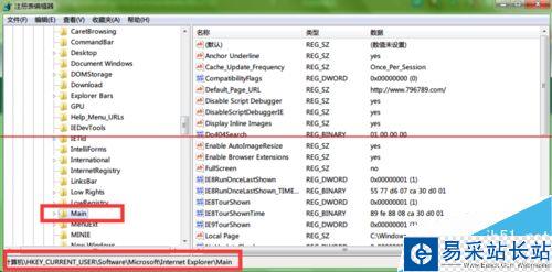 3、依次展開到HKEY_CURRENT_USER/Software/Microsoft/Internet Explorer/Main分支