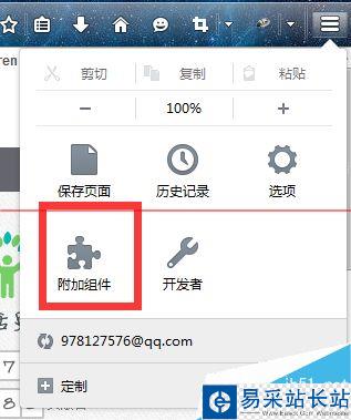 3、在我們打開的火狐瀏覽器地址欄的最右端,有一個“打開菜單”的選項,我們點擊它。點擊之后,會出來一個對話框,在出來的對話框中,我們點擊“附加組件”這個選項