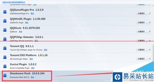 5、在右側的欄目里面,我們要尋找“Shockwave Flash”這個插件,找到之后,看圖,我們在右側有一個下拉的菜單欄,我們把這個插件選為“總是激活”狀態,這樣就ok了,選完之后,它是自動保存的,直接關掉就ok!