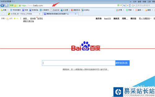 5、進入到360瀏覽器主頁后,我們在它的地址欄中輸入百度網址,進入百度主頁。