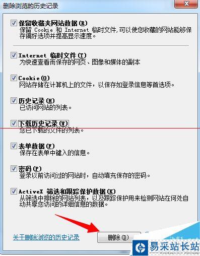 3、在彈出的刪除瀏覽記錄對話框中,將復(fù)選框全部勾選,然后點(diǎn)擊下方【刪除】