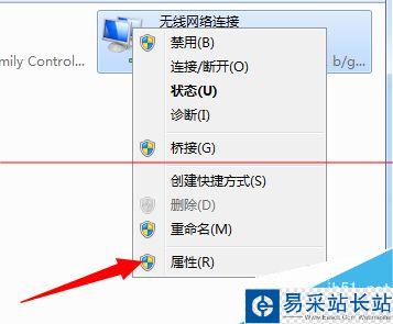 3、在列表中右鍵選擇當(dāng)前連接的網(wǎng)絡(luò),點(diǎn)擊【屬性】