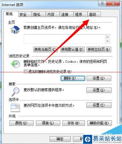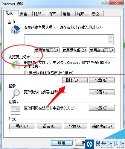2、首先我們清除瀏覽器緩存,進(jìn)入Internet選項(xiàng)對話框,在常規(guī)界面,點(diǎn)擊【刪除】選項(xiàng)