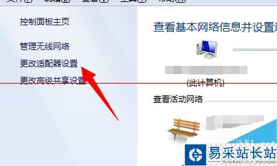 2、進(jìn)入網(wǎng)絡(luò)屬性界面,點(diǎn)擊左上方的【更改適配器設(shè)置】