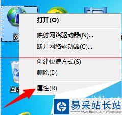 1、右鍵點(diǎn)擊桌面的【網(wǎng)絡(luò)】圖標(biāo),在彈出的菜單欄點(diǎn)擊【屬性】