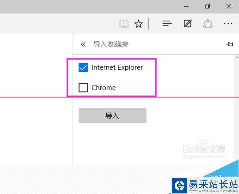6、選擇一個(gè)你要導(dǎo)入IE瀏覽器,然后再點(diǎn)擊【導(dǎo)入】,可以選擇一個(gè)或是電腦上多個(gè)收藏夾的瀏覽器。