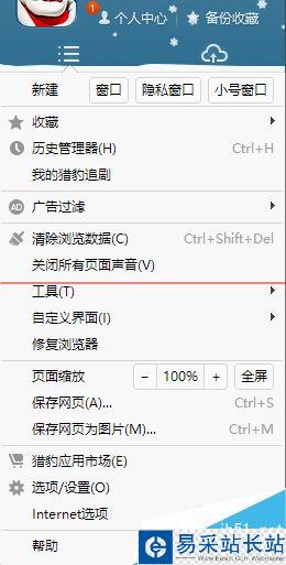 1、請打開獵豹瀏覽器主頁,如圖。這時候請單擊瀏覽器最左上角的個人賬戶頭像,我的是一個圣誕老人頭像。