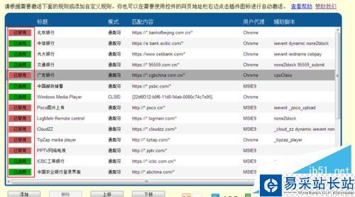 6、請根據需要激活下面的規則或添加自定義規則。你也可以在需要使用控件的網頁地址欄右邊點擊插件圖標進行自動激活。