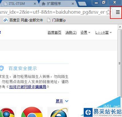 2、打開谷歌瀏覽器,點擊瀏覽器右上角的“自定義及控制Google Chrome”。