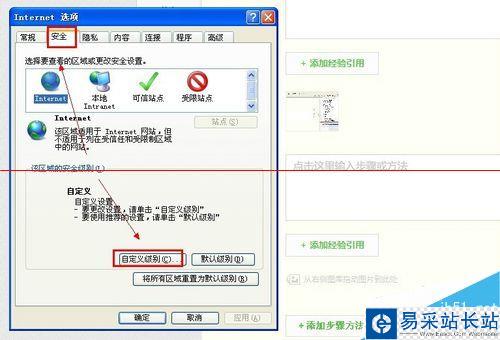 3、在“安全”標簽下,找到“自定義級別”的按鈕。