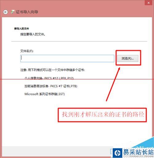 4、點擊“下一步”繼續,找到剛才下載并解壓出來的證書