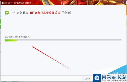 6、這個時候我們看到人工服務正在為我們修復所遇到的問題,我們耐心等待修復進度條完成。如圖所示;