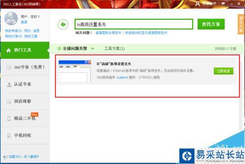 5、如果和我們描述的問題相符合。我們就選擇這條人工服務解決方案。然后點擊【立即修復】。如圖所示;