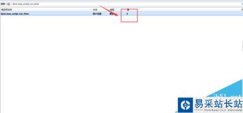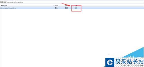 3、在搜索的空白欄中輸入dom.max_script_run_time 并回車。