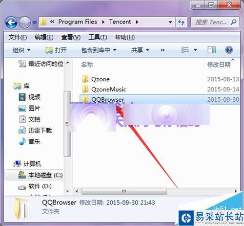 4、打開Tencent的文件夾后,在這個列表中,可以看到這里有一個QQBrowser的文件夾。這個文件夾就是qq瀏覽器的文件夾。