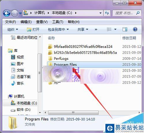 2、打開c盤后,在它的列表中找到Program Files 的文件夾。一般的程序都是安裝到這個文件夾中的,也有一些會安裝到帶有(86)的文件夾中。點擊打開這個文件夾。