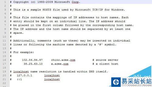 3、hosts文件是做什么的呢?它是用來告訴瀏覽器,網址對應的IP地址。當我們通過瀏覽器訪問網址時,瀏覽器首先會訪問hosts文件,看看里面有沒有本網址對應的IP地址,如果有的話,直接訪問對應的IP地址,不需要DNS域名的解析。hoss文件的內容如圖