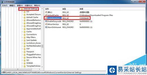 5、向下拉動滾動條找到并選中Internet Settings,選擇并打開CodeBaseSearchPath
