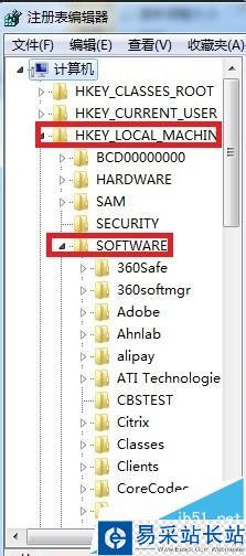 2、選擇并打開HKEY_LOCAL_MACHINE/Software