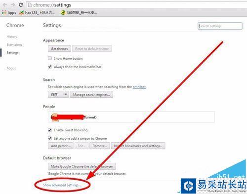 3、在設(shè)置頁面,往下拉,找到“Show advanced settings...”,單擊之