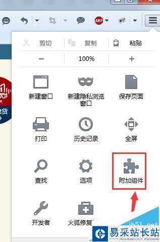 3、在彈出來的選項菜單里面,點擊附加組件按鈕,進入附加設置頁面
