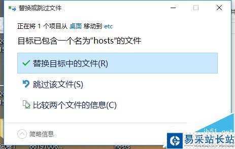 4、如果無法保存,可以先保存到桌面,再拷貝到 C:/Windows/System32/drivers/etc/ 文件夾下,替換即可