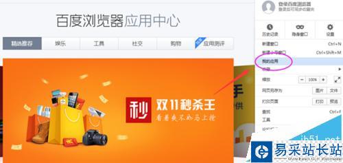 2、如果你已經安裝了百度瀏覽器了,那么點擊“我的應用”---“雙11秒殺王“安裝應用
