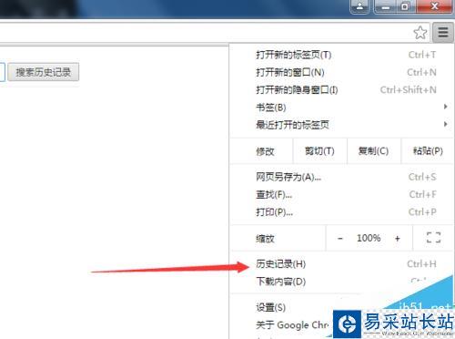 5、在通過進行查看網頁中是否產生歷史記錄的信息,可以直接點擊窗口“更多”》》“歷史記錄”。