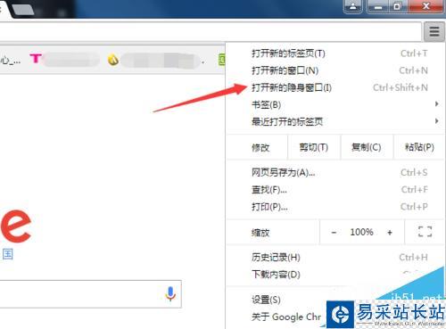 2、彈出的下拉的菜單中可以看到為“打開新的隱身窗口”的選項。
