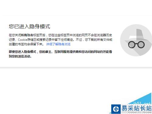 3、打開隱身窗口完之后就會提示“您已進入隱身模式”,這樣個窗口中可以看到相關的隱身模式的好處。